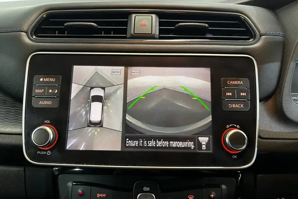 12V Socket, 17in Alloy Wheels, 3 Pin EVSE Charging Cable, 50kW CHAdeMO Rapid Charger, 6.6kW AC On Board Charger, 60-40 Split Folding Rear Seats, 7in TFT Screen Combimeter, ABS with EBD and Brake Assist, AM-FM-DAB Audio System, AUX Socket, Alarm - Thatcham, Android Auto and Apple CarPlay, Auto Dimming Rear View Mirror, Auto Wipers, Automatic Air Conditioning, BOSE Premium Audio System with 7 Speakers, Blind Spot Warning, Body Coloured Door Mirrors with Integrated LED Indicators, Door Handles - Chrome, Driver - Passenger - Side - Curtain Airbags, E-Pedal, ESP - Electronic Stability Programme, EV Connect Telematics System, Electric Folding Door Mirrors, Electric Parking Brake, Electric Power Steering, Front Centre Console and Armrest, Front Seat Back Pockets, Front and Rear Electric Windows, Gloss Black B-pillar, Headlights - High Beam Assist, Heat Pack, Heat Pump, Hill Start Assist, ISOFIX Child Seat Anchoring Points - Front and Rear, Illuminated Charge Port, Intelligent Auto Headlights with Follow Me-Home Functionality and Auto Hazard Lights, Intelligent Cruise Control, Intelligent Emergency Braking with Pedestrian Recognition, Intelligent Lane Intervention, Intelligent Trace Control, LED Pack, LED Signature Daytime Running Lights, LED Signature Tail Lights, Lane Departure Warning, Leather D Shaped Steering Wheel, Manually Adjustable Drivers Seat - Slide - Recline and Lifter, Manually Adjustable Passenger Seat - Slide and Recline, Metallic Blue Rear Finisher, Mode 3 Type 2 Charging Cable, Nissan Connect EVO 8in Touchscreen Navigation and Entertainment System, Nissan i-Key, ProPILOT, Rear Cross Traffic Alert, Rear Privacy Glass, Rear USB Ports x2, Rear View Camera, Remote Audio Control, Speed Limiter, Start Push Button, Tech Pack, Tilt Adjustable Steering Wheel, Traction Control, Zero Emission Badging - Boot Lid, Zero Emission Badging - Doors